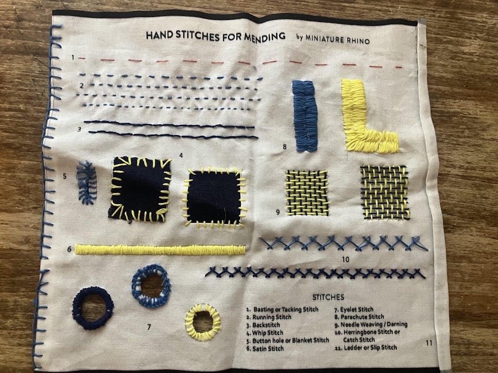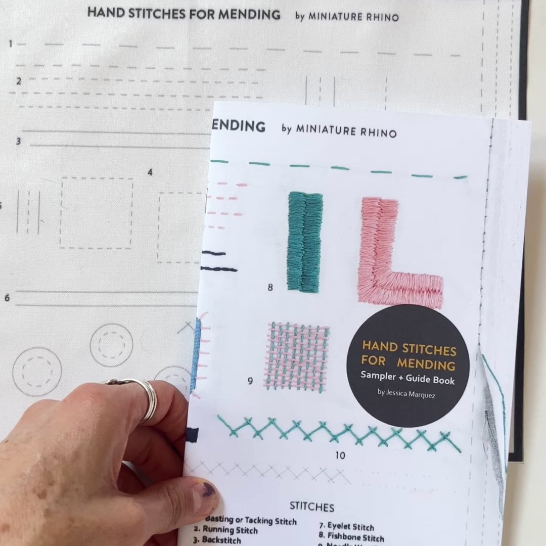 I'm a nerd for samplers and wanted to create one dedicated to all things mending. Although, these stitches can also be used for embellishment too. The sampler covers 11 different stitches in depth. The companion booklet provides how-to information, as well as the typical uses, tips and variations for each stitch. Work alongside the booklet for step-by-step images as well as front and back views of each stitch. The booklet also covers materials, starting and ending a length of thread, and a reference section with further reading and resources.